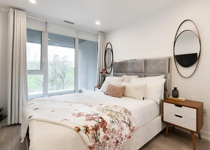 El apartamento Chic 2 Bedroom 2.5 Bath Downtown Toronto está situado a tan solo 1 km de la Torre CN, y a unos 5 minutos en coche del Estadio Rogers Centre.